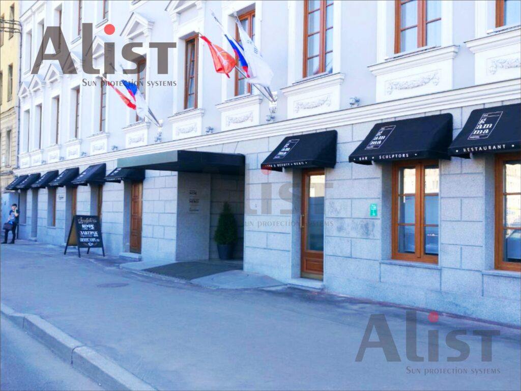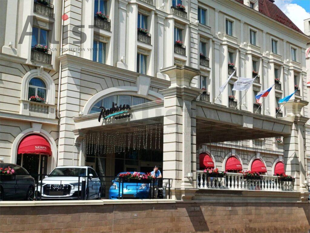 Статусные, пятизвездочные отели используют маркизы для поддержания комфортных условий в летнее время года, при этом снижаются затраты на оплату коммунальных услуг.